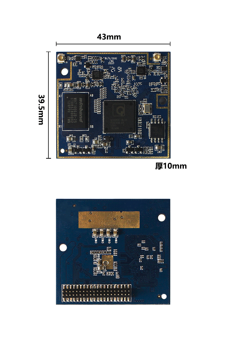 9. Module size structure: 43mm(W)*39.5mm(L)*10mm(H), 40 Pin connectors